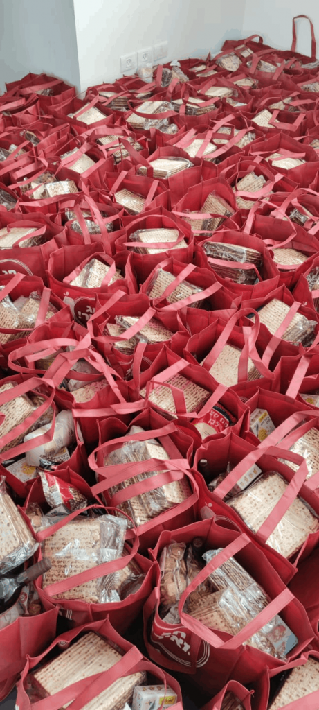 These days we are starting to organize the baskets of food for Passover. Our many volunteers pack all the food, thanks to the generous Passover donations of our donors, and make sure that any needy, Holocaust survivor or family will not be left without holiday food.